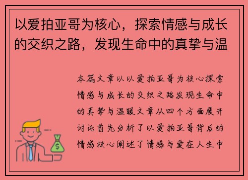 本文将带领读者跟随“合影哥”的奇幻之旅,见证一位普通街头摄影师如何通过自己对生活的热爱与努力,从街头拍摄到豪华名流宴会的转变。文章通过多个方面探讨合影哥的成长与改变,分享他在这个过程中所经历的荣耀与温情。合影哥不仅是摄影师,他的相机镜头还记录了人性中的温暖与美好,而这些瞬间也为他带来了人生的新机遇与...